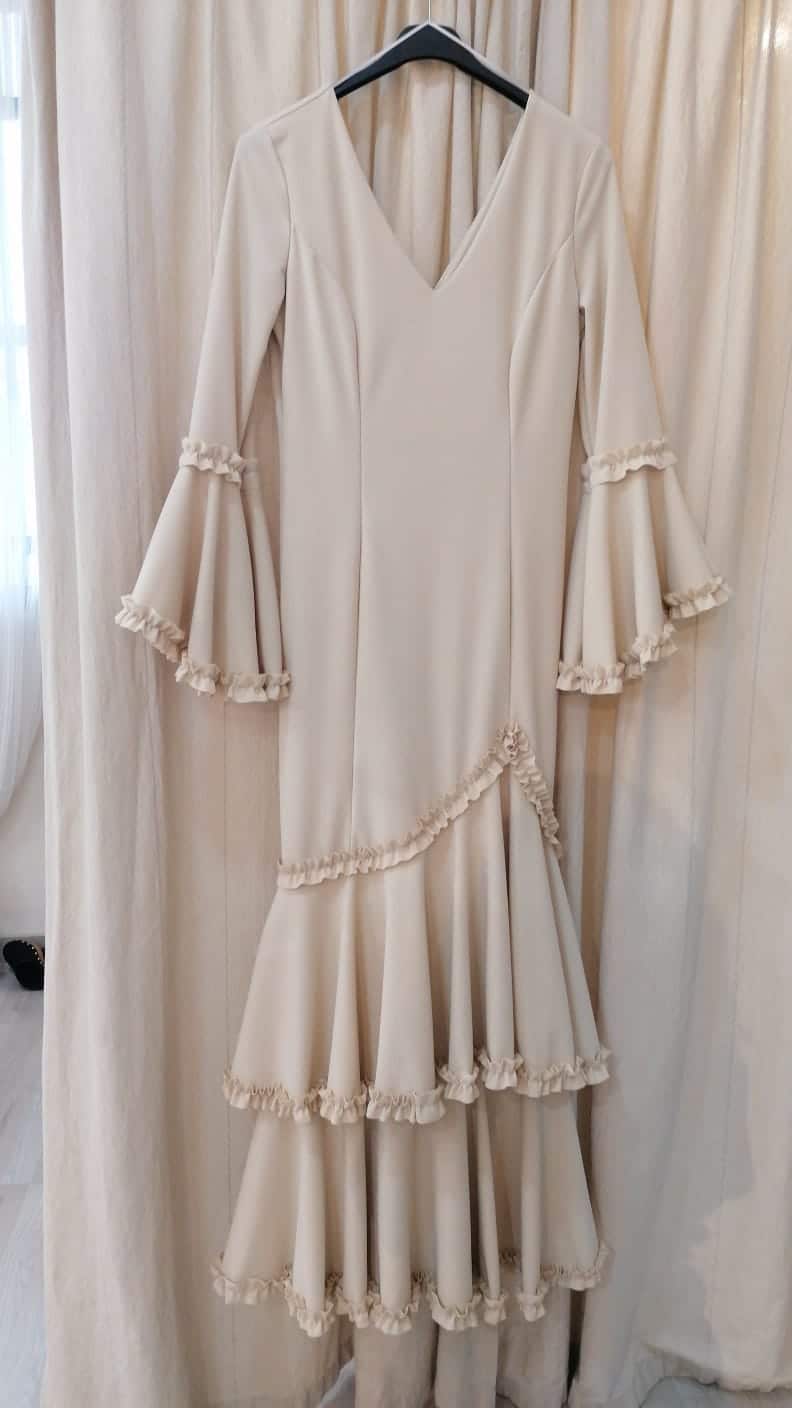 Vestido Flamenca Garrucha LUXE manga asimétrica talla L color beige